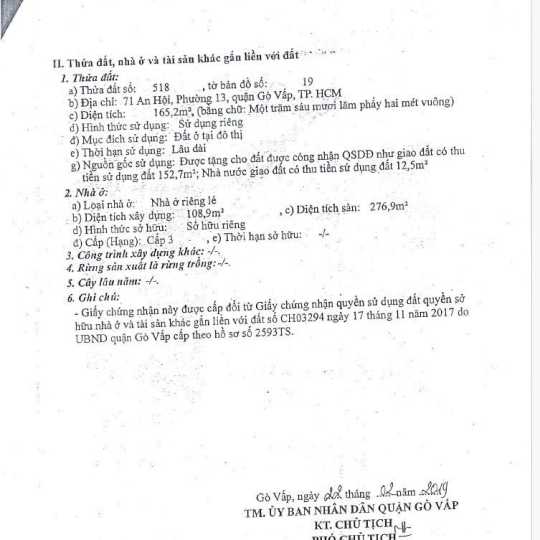 Quỹ đất vàng hiếm có tại Phường 13 Quận Gò Vấp. An Phát Tài xác thực pháp lý minh bạch (DT công nhận đủ 165 m2). Hỗ trợ vay vốn ngân hàng, cơ hội đầu tư sinh lời vượt trội với Giá 11.5 Tỷ.