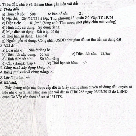 Vị trí: Hẻm 1264/57/22 Lê Đức Thọ, Phường 13, Quận Gò Vấp.