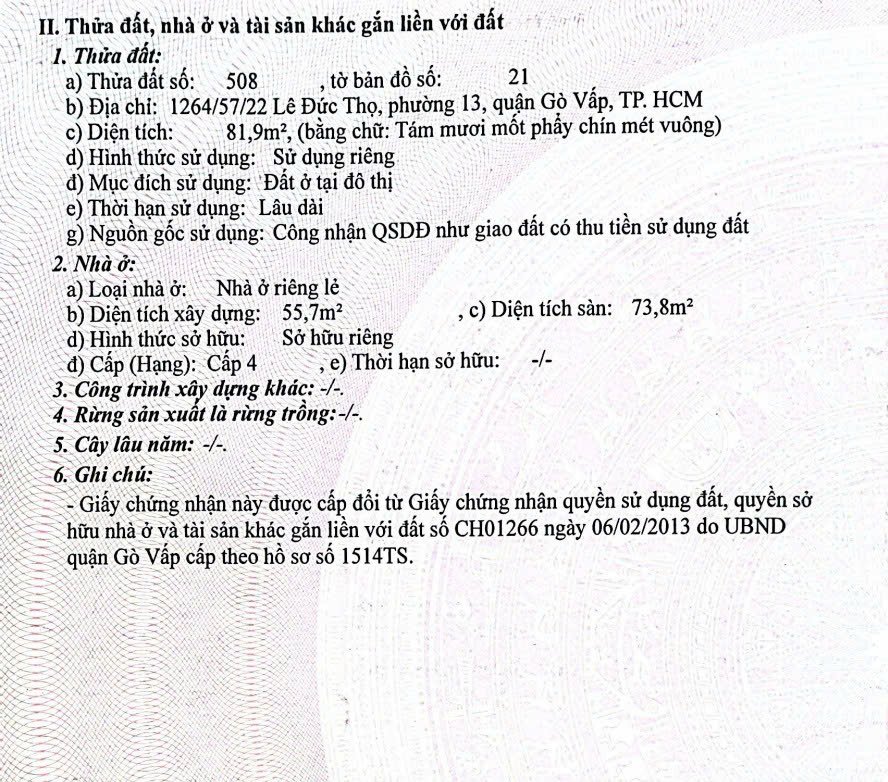 Diện tích công nhận (DTQH): 81 m2 (Công nhận đủ 100%).