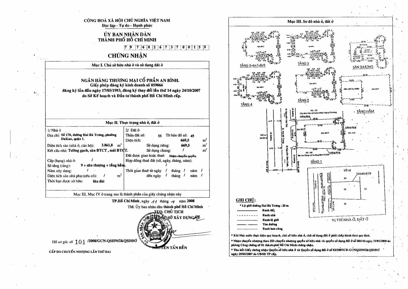 - Diện tích khu đất (DTKV): 669.33 m2 (Ngang 18.8m x Dài 33.6m).