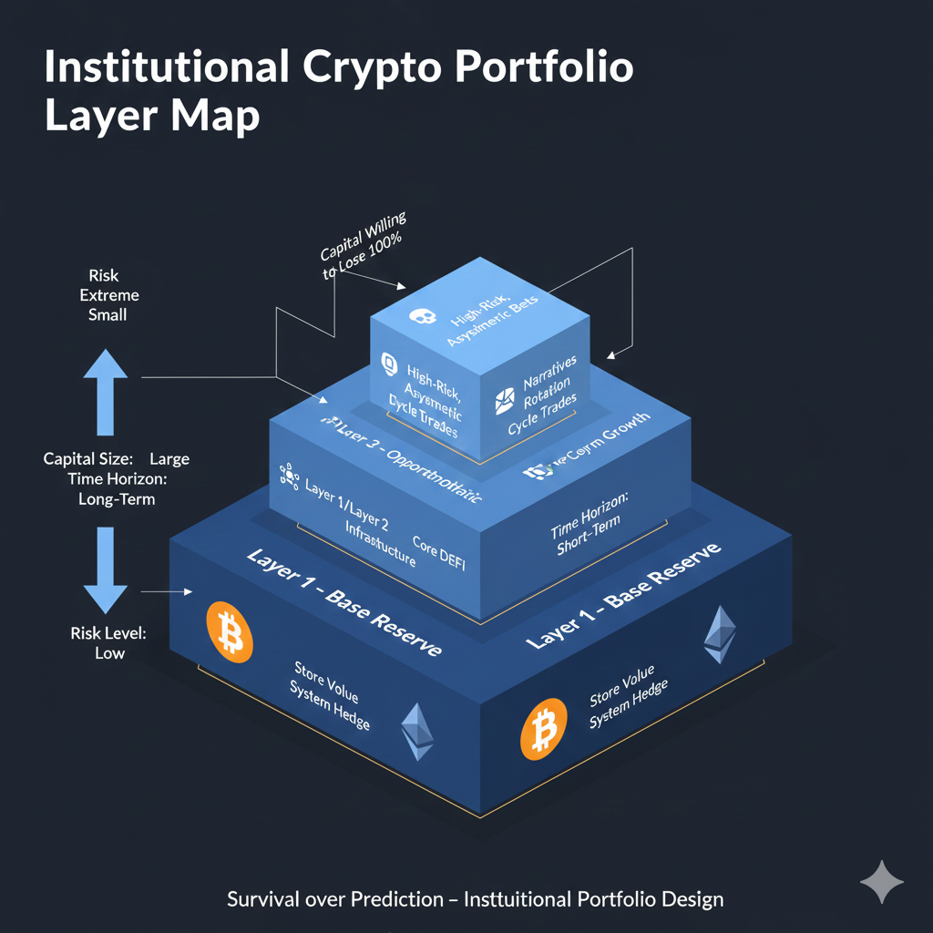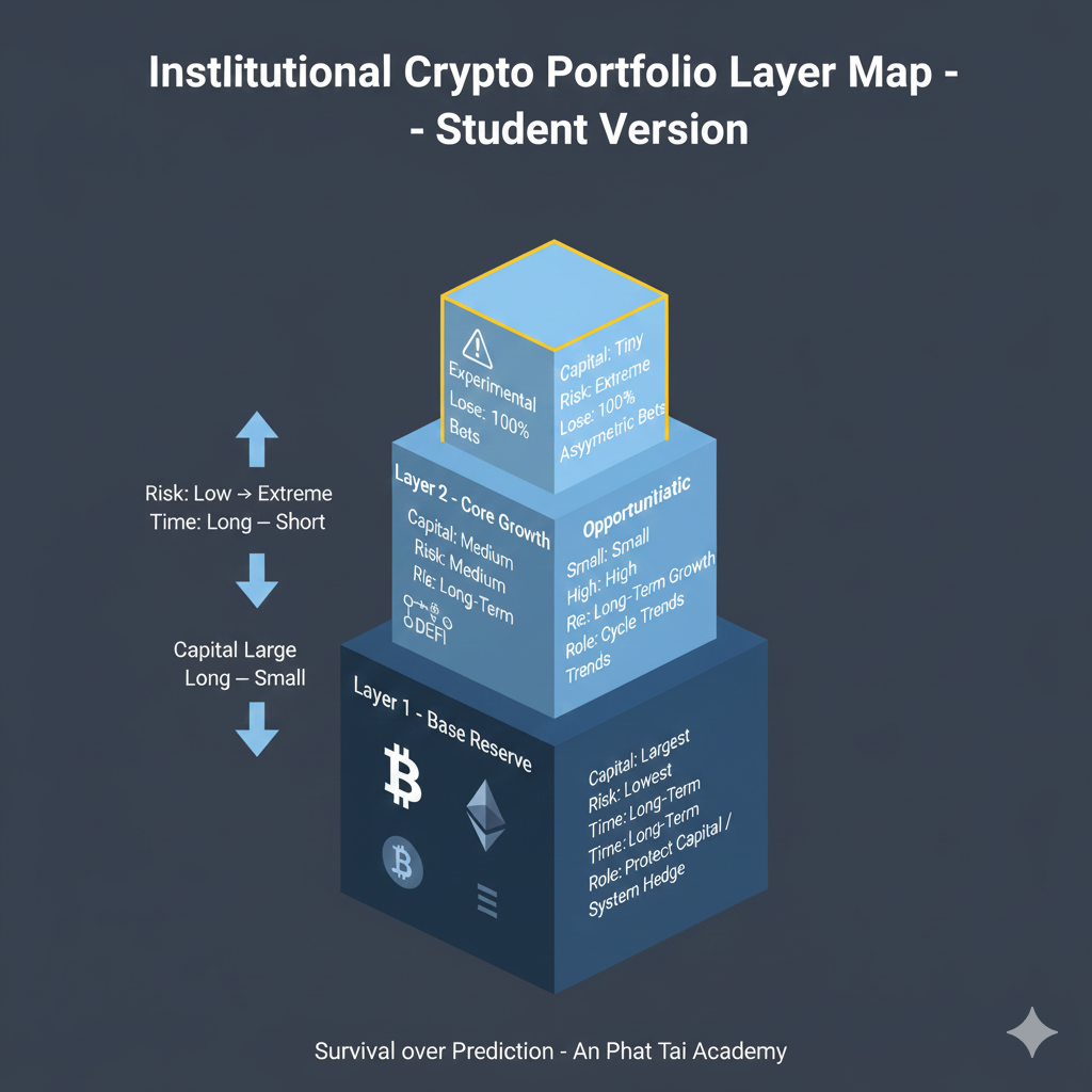 Danh mục crypto chuẩn Institutional gồm 4 Layer: