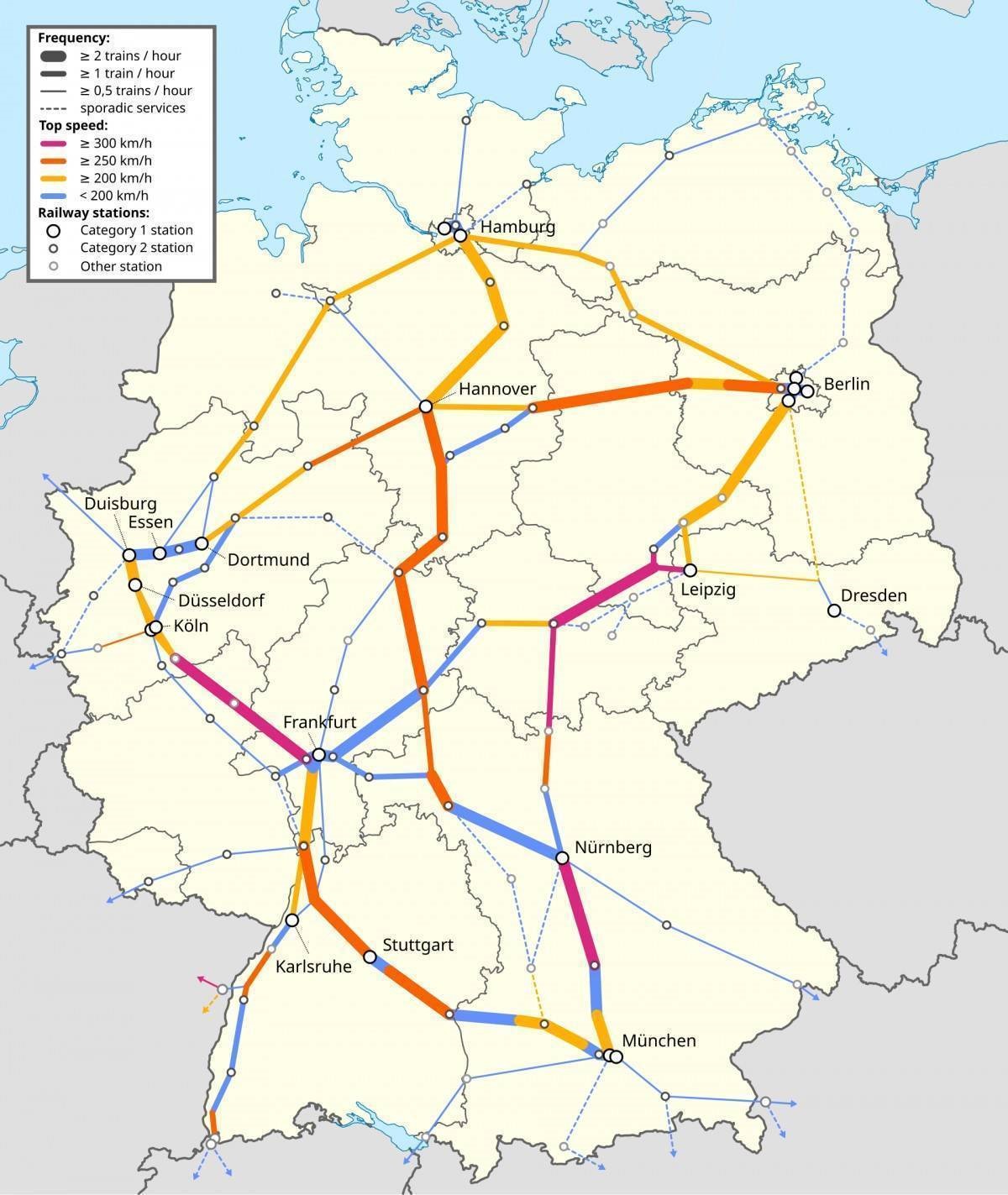 - ICE giúp hình thành “chuỗi đô thị ngang”: Hamburg – Hannover – Frankfurt – Stuttgart – Munich