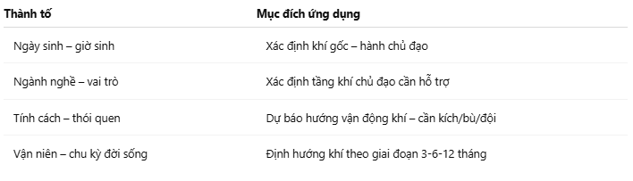 Bước 1: Lập hồ sơ nhân dạng khí (gồm mệnh – vận – hành – tính cách – nghề)